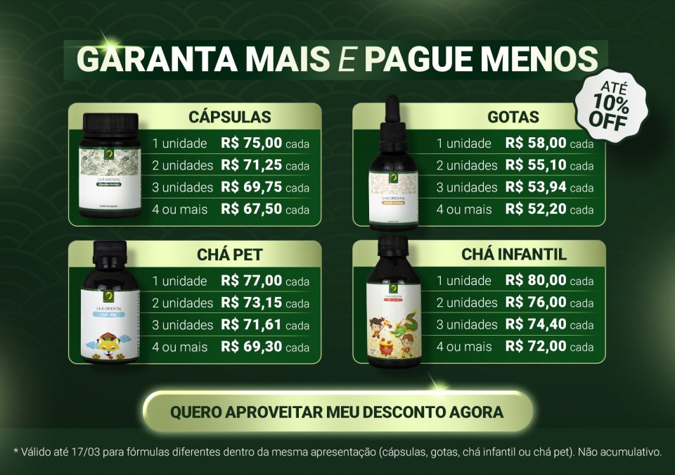 São 7 dias com ofertas imperdíveis para você adquirir nossas Fórmulas Chinesas. Corra para aproveitar todos os benefícios antes que acabe!